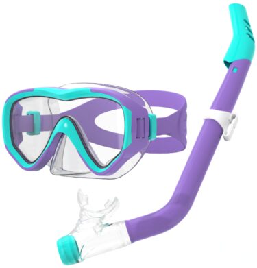 Diving Set for Kids – Liquid Silicone Gasket & Flexible Mouthpiece – Silicone Strap & Valve – Tempered Glass Lens