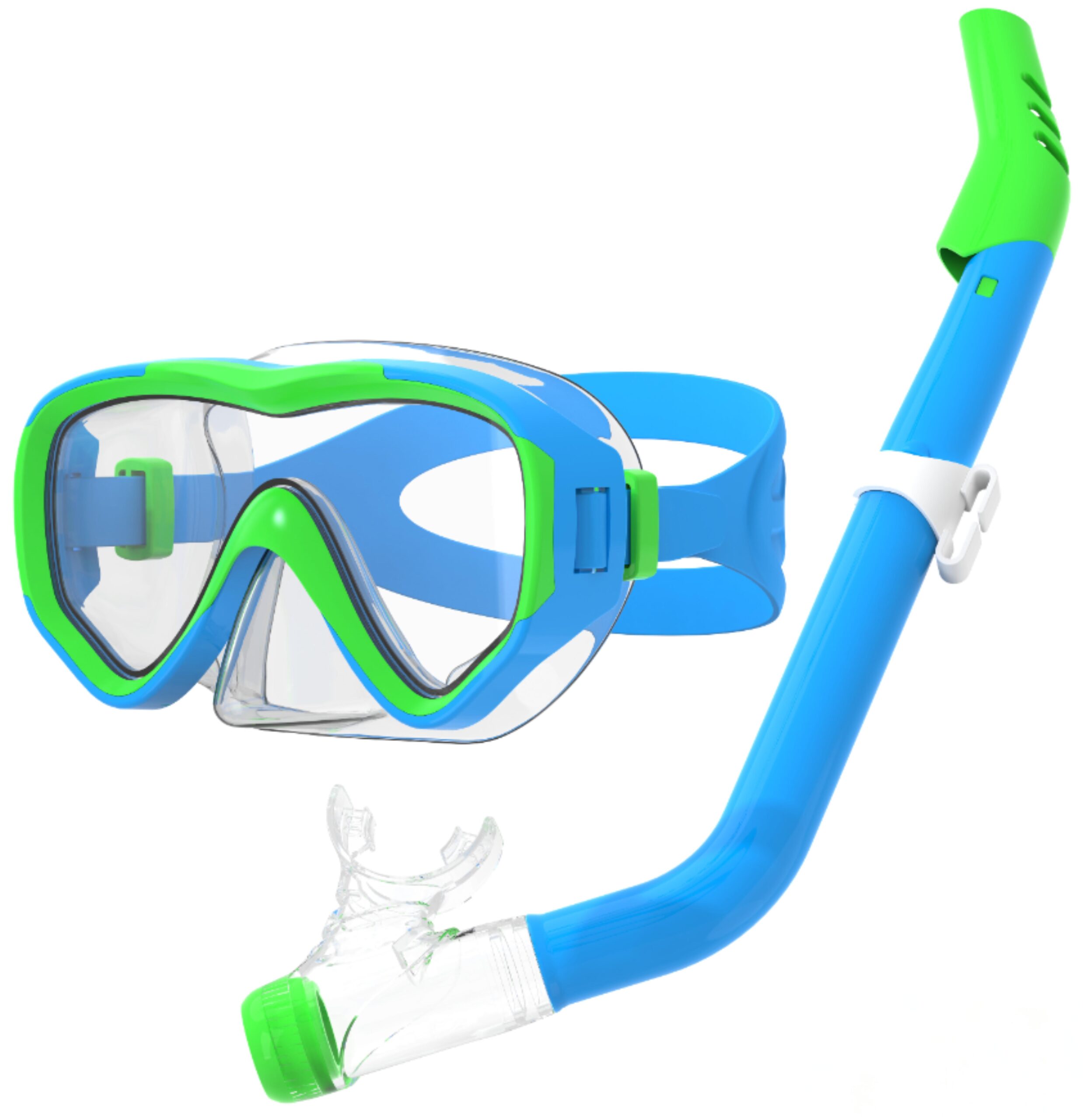 Diving Set for Kids – Liquid Silicone Gasket & Flexible Mouthpiece – Silicone Strap & Valve – Tempered Glass Lens