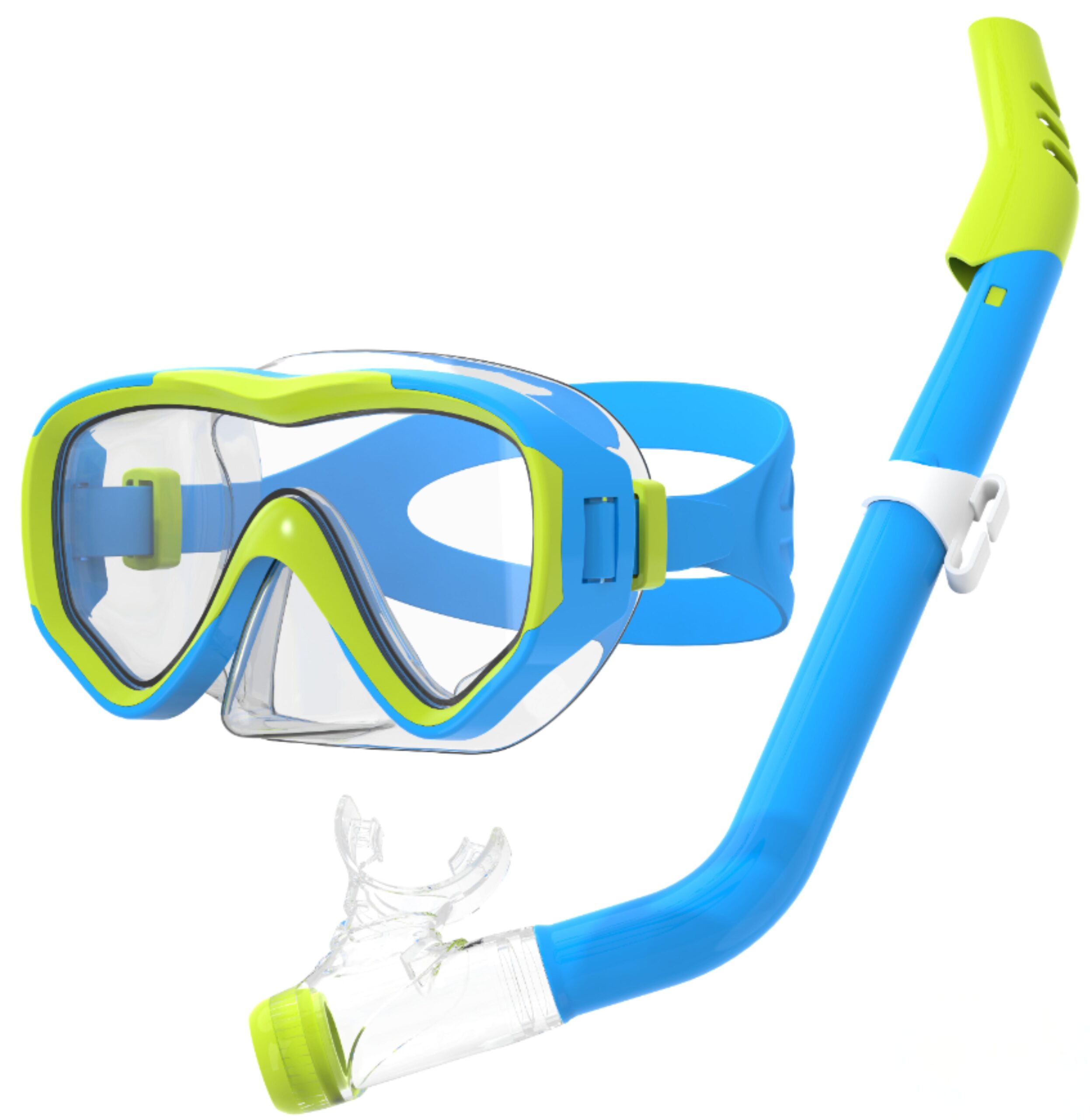 Diving Set for Kids – Liquid Silicone Gasket & Flexible Mouthpiece – Silicone Strap & Valve – Tempered Glass Lens / 21133