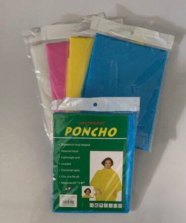 Kids Rain Poncho / 4 Assorted Colors / Yellow, Pink, Blue & Clear.