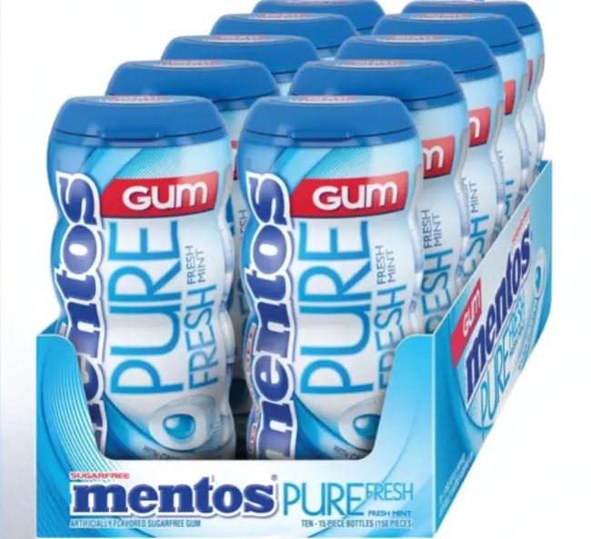 - Mentos Pure Fresh Sugar Free Gum, Fresh Mint, 15 Pieces, 10-count
